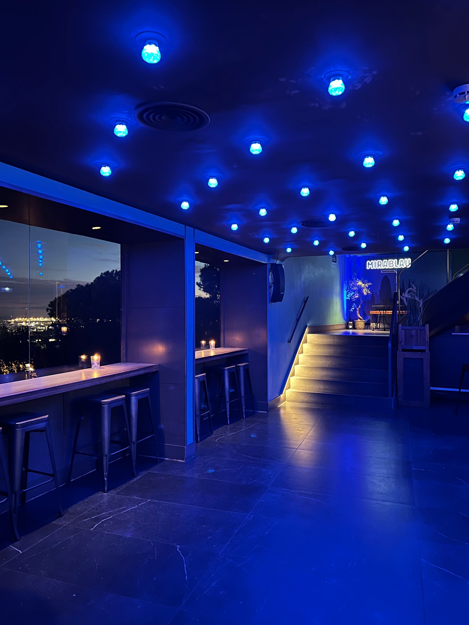 A partir de medianoche, el mítico restaurante Mirablau de Barcelona se convierte en el club con mejores vistas de la ciudad.